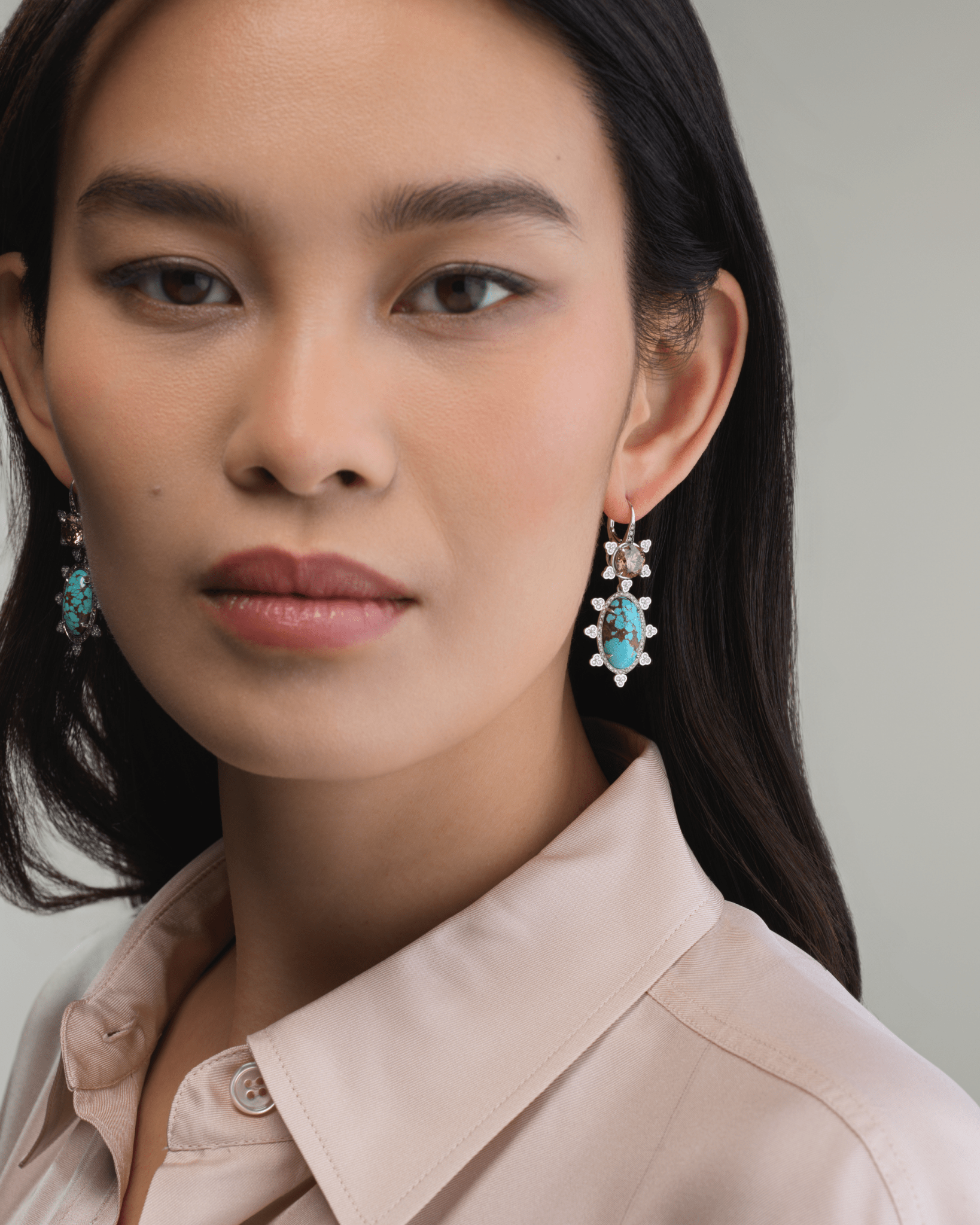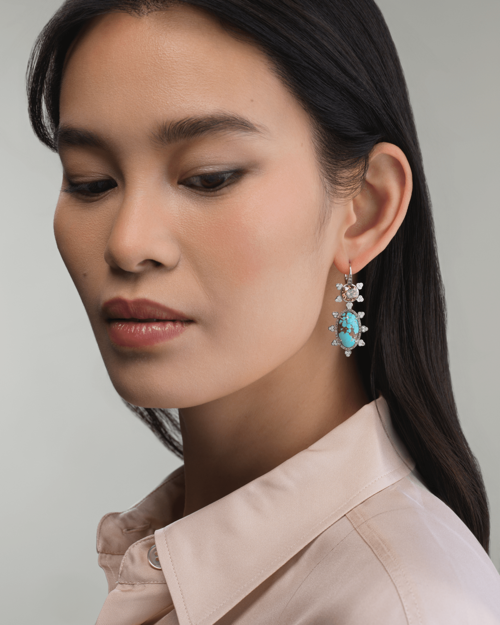 9.7 MM Turquoise Drops with Reverse Set Cognac Diamonds Set in Platinum