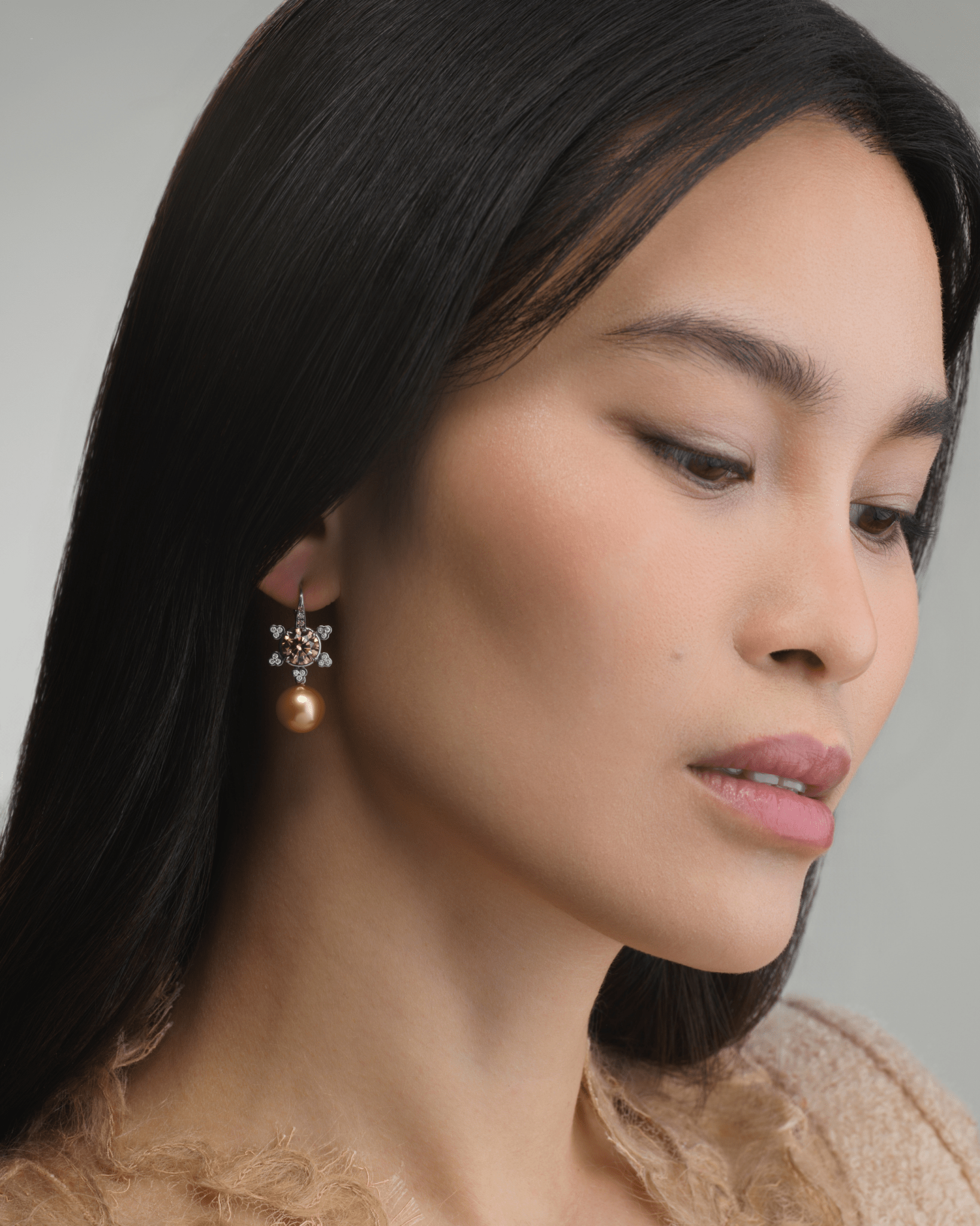 11 MM Golden South Sea Pearl Drops Set in Platinum