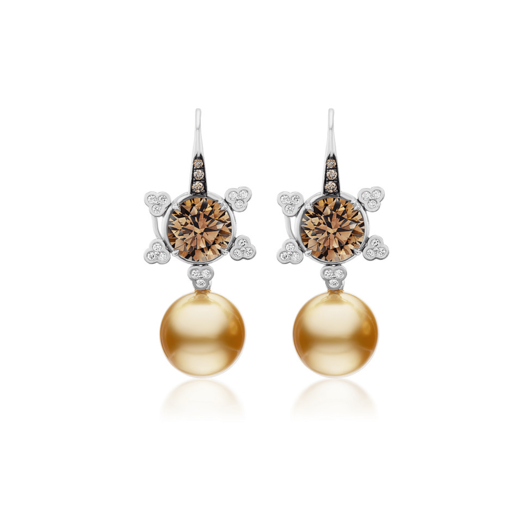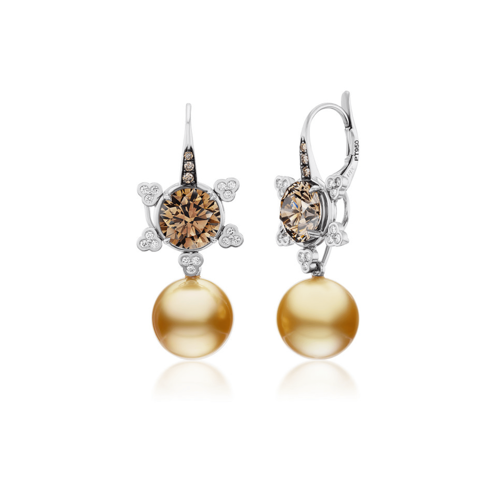 11 MM Golden South Sea Pearl Drops Set in Platinum