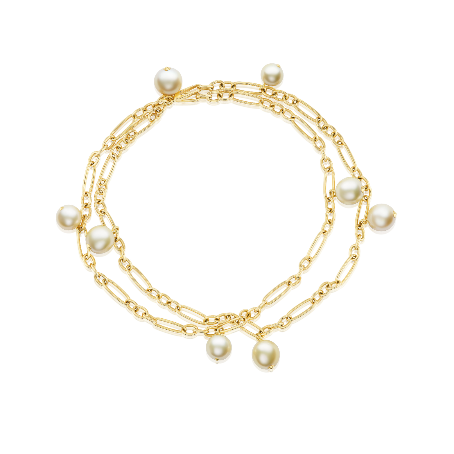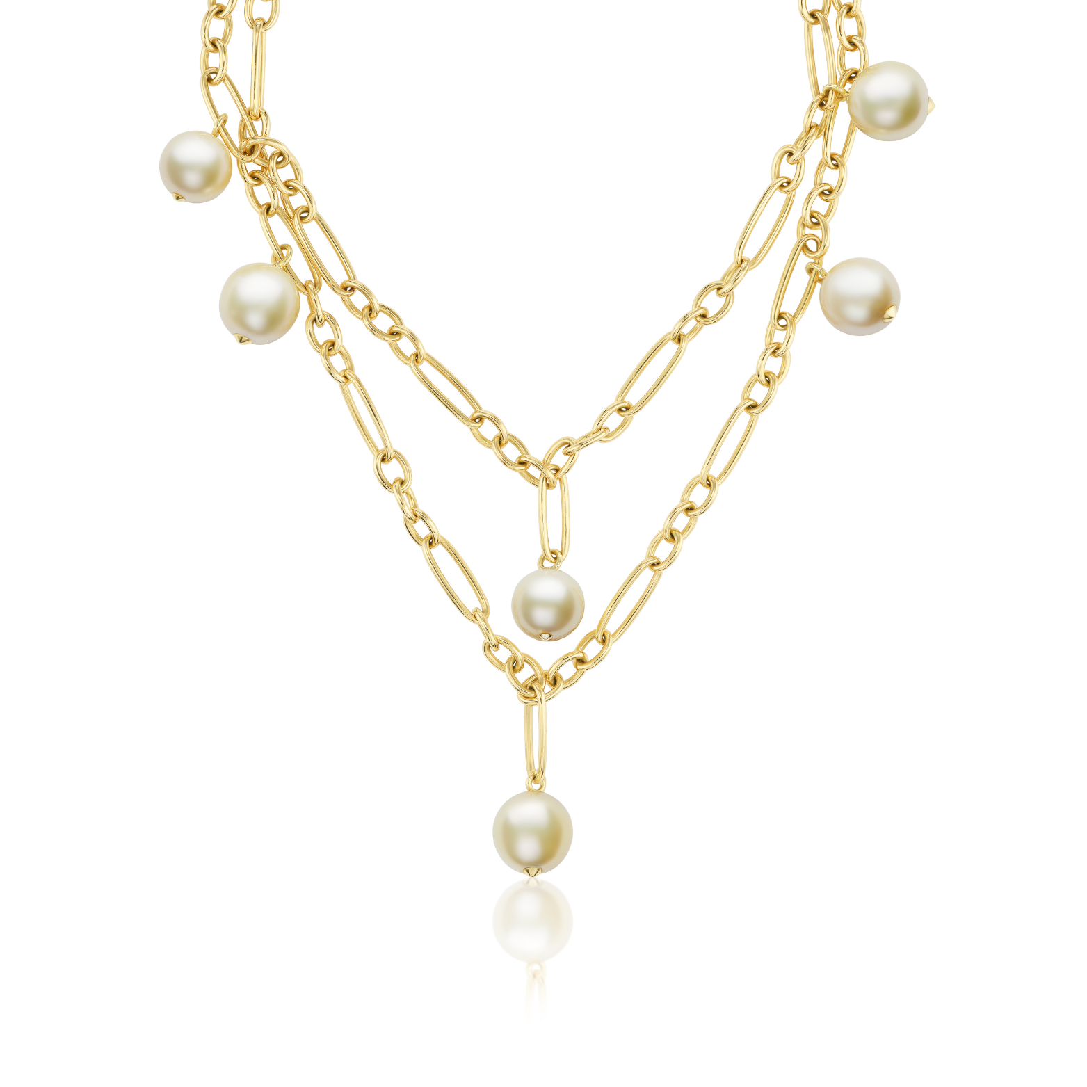 12-14 Golden South Sea Pearls Set in 18K Yellow Gold